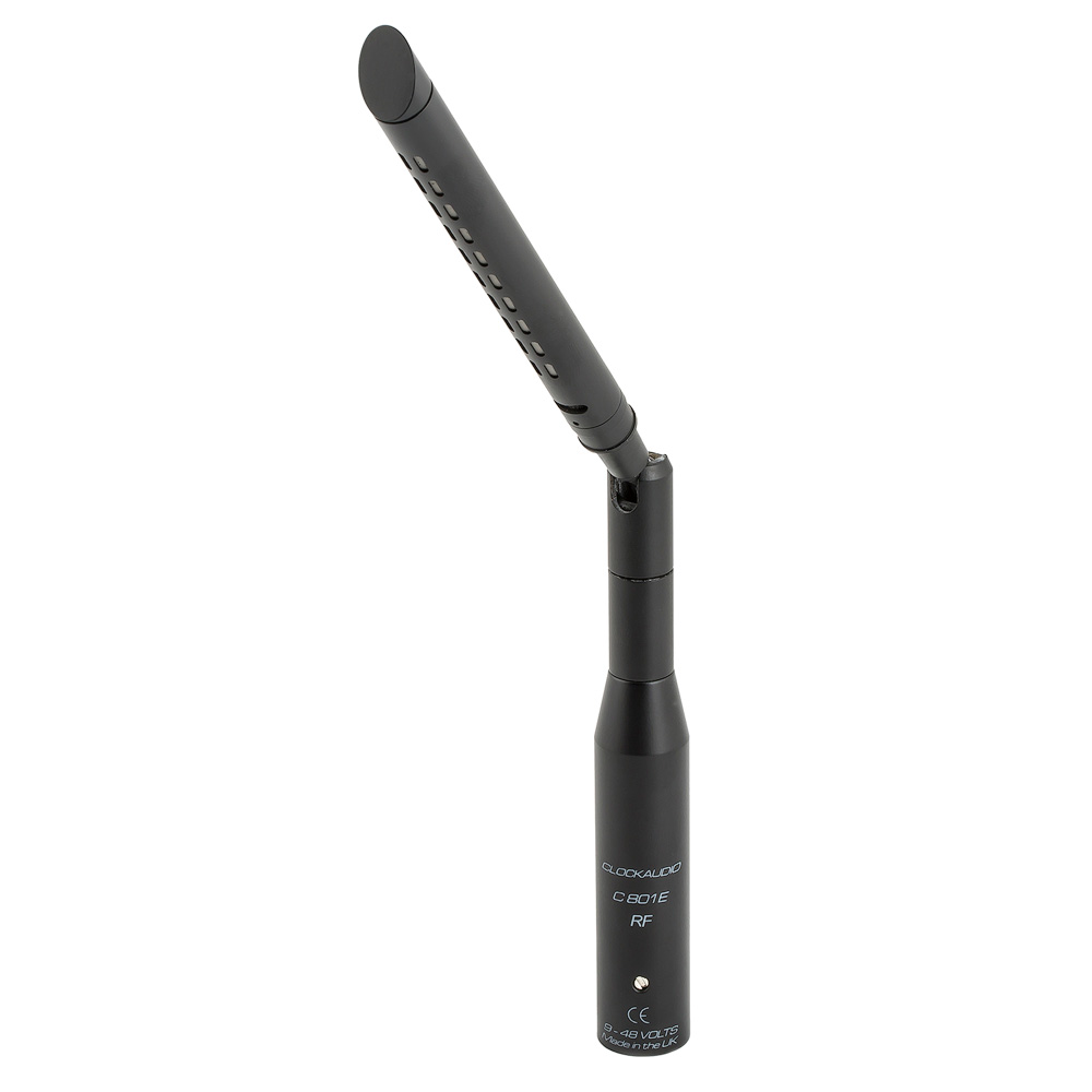 C 801E-RF Kondenzátorový mikrofon mini "puška", s kloubem, RF filtr, XLR, černý CLOCKAUDIO