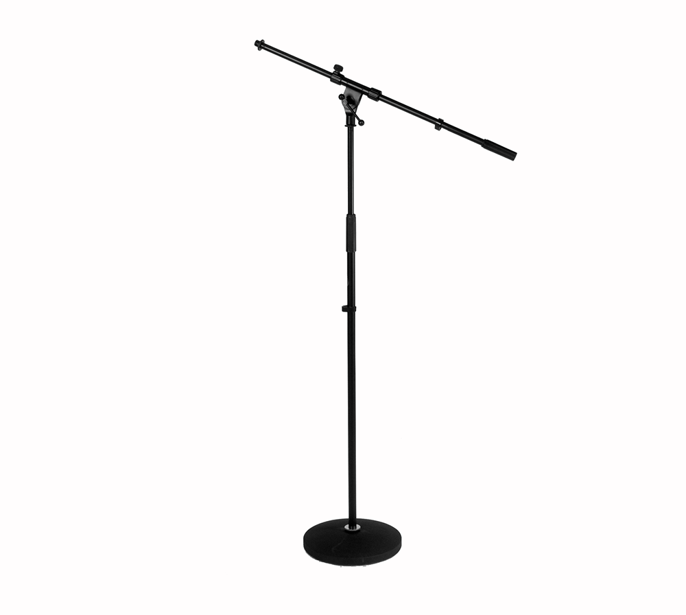 Mikrofonní stativ s ramenem, nastavitelná výška v rozsahu 830-1540mm, délka ramene 800mm, kruhová základna ? 250mm. Součástí dodávky závitová redukce 5/8\"-3/8\" a klip pro uchycení kabelu. Materiál ocel, základna litina, hmotnost 3,78kg, barva černá.